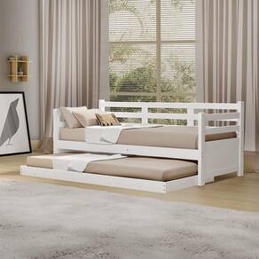 AS IMAGENS SÃO MERAMENTE ILUSTRATIVAS E PODEM SOFRER VARIAÇÕES DE COR E PEQUENOS DETALHES DE ACORDO COM O SEU MONITOR, ILUMINAÇÃO DO AMBIENTE E ATÉ MESMO A SUA PERCEPÇÃO VISUAL.Sofà Cama Solteiro em Madeira Vintage RÃstico Enjoy Branca