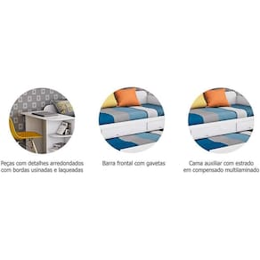 CARACTERÍSTICAS DE MÓVEIS Tipo de Estrutura do Móvel - 100% MDF Tipo de Pintura - UV Tipo de Acabamento da Pintura - Semi Brilho Tamanho do colchão para usar na cama - Solteiro 88x188 Suporte de Peso - 80 kg