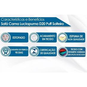 Sofá Cama Solteiro Luck Puff D20 Tecido Estampado - Luckspuma