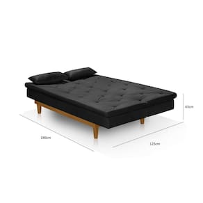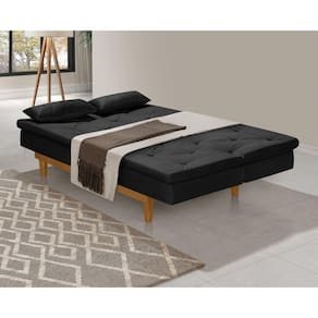 Esse produto foi projetado e desenvolvido para oferecer 2 opções em um mesmo produto, seja como Sofá ou seja como Cama. Quando utilizado como Sofá acomoda confortavelmente até 3 pessoas sentadas. Quando utilizado como Cama pode ser utilizado por 2 pessoas se tornando assim em uma cama de casal. Esse produto é fabricado com uma estrutura em madeira 100% reflorestada, Espuma D26, Percinta elástica, Molas Espiral, Tecido TNT 100% poliéster. Possui base e pés em madeira maciça com acabamento na cor Castanho. O produto acompanha 2 almofadas que podem ser utilizadas como travesseiros. Acompanha Almofadas extras: 02 Almofada do assento: Fixa Almofada do encosto: Fixa Altura do assento até o chão: 43 cm Altura do Encosto: 47 cm Altura dos Pés: 12 cm Ambiente Principal: Sala de Estar Complexidade da Montagem: Baixa: pode ser montado por uma pessoa sozinha Cor: Preto Cor do Produto: Preto Densidade do Assento: D-26 Densidade do Encosto: D-26 Enchimento do Assento: Espuma Enchimento do Braço: Enchimento do Encosto: Espuma Estilo de Braço: Sem Braços Firmeza do Assento: Macio Informações Complementares: Acomoda 3 pessoas sentadas ou 2 deitadas Itens Inclusos: 1 Sofá, 4 Pés e Manual de Montagem Largura do Sofá Maior: cm Linha ou Coleção: Tokio Manual de Especificação Técnica: https://cdn2.madeiramadeira.com.br/atributo/imperio-estofados/551817-garantia-imp-rio-estofados.pdf Manual de Montagem e Instalação: Material dos Pés: Madeira Medida como Cama (A x L x P): 43cm x 125cm x 190cm Modelo: Somente Reclinável Necessita Montagem: Sim Origem do Produto: Nacional Peso: 48 kg Pet Friendly: Não Possui Baú: Possui Percintas Elásticas: Sim Possui Pés: 04 Possui Rodízio: Não Profundidade Quando Estendido: cm Reclinável: Sim Recomendações de Uso, Manutenção e Limpeza: Não utilizar produtos químicos, limpar apenas com pano levemente umedecido com água. Revestimento do Assento: Suede Aveludado Revestimento do Braço: Revestimento do Encosto: Suede Aveludado Rodízio com Trava: Não Sistema de Montagem: Somente rosquear os pés Tecido Predominante: Suede Tipo de Assento: Fixo Tipo de Encosto: Regulável Tipo de Mola: Molas Bonnel