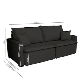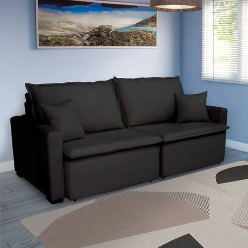 Sofá Cama Tóquio Com Almofadas Soltas 2.20m - Preto