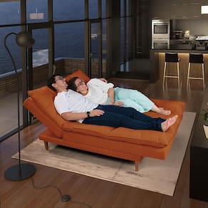 Quem costuma receber visita em casa ou quer manter o centro de entretenimento aconchegante não pode deixar de contar com um Sofá-Cama, né? Por isso, o modelo Vancouver é ideal para unir bom gosto e praticidade de uma só vez. Além da estrutura em Madeira Maciça que oferece um ótimo reforço para o constante, o Assento e o Encosto é de fibra siliconada com persintas elásticas italiana, é muito confortável... vocês não tem idéia do quanto é fofinho e macio, tanto para quem deita como para quem usa como sofá, a peça ainda é revestida em Suede Aveludado e acompanha duas almofadas decorativas 100% fibra siliconada que pode ser usada como travesseiro. De quebra, se transforma rapidamente de sofá para cama e Chaise e ajuda a otimizar até os cômodos mais compactos. Acomoda confortavelmente 2 pessoas deitadas e 3 sentadas, podendo ser em até 5 posições diferentes