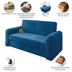 Sofá Cama Versátil 2 Lugares Veludo Selmer Azul