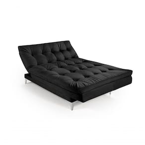 Este sofá cama acomoda tranquilamente 3 pessoas sentadas e duas deitadas, ele pode ser até 5 posições diferentes. Espuma de alto conforto com a densidade tanto no assento como no encosto D26, com percintas elásticas e molas bonel, pés e base em madeira maciça e acompanha duas almofadas que pode ser como travesseiro.