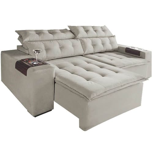 Sofá Carioca Retrátil E Reclinável 4 Lugares 230cm Tecido VeludoSofá Carioca Retrátil E Reclinável 4 Lugares 230cm Tecido Veludo inspirado nas belezas do Rio de Janeiro. Com detalhes em cada canto, o Sofá Carioca vai te encantar. Costura na parte superior dos braços e alto relevo na frente dos assentos. O sofá possui Pillow-top e almofadas bem gordinhas para muito mais conforto e momentos de descanso.Revestimento: Tecido Veludo de excelente toque.Material da Estrutura: Madeira Eucalipto muito resistente, de qualidade e ecologicamente correto.Características dos Assentos: Retráteis compostos por madeiras, trilhos metálicos, molas espirais do tipo bonnel, cintas elásticas do tipo italiana, espumas D-28 Soft certificadas e camada de manta de silicone.Características dos Encostos: Reclináveis proporcionando cinco posições diferentes, composto por madeira, fibras de silicone e espumas agregadas para aumento de resiliência.Montagem: Produto de fácil e prática montagem, dispensa uso de ferramentas, necessita apenas encaixar os encostos e unir os lados direito e esquerdo com parafusos de porca do tipo borboleta.Medidas:Altura: 095cmLargura: 230cmProfundidade Fechado: 100cm / Aberto: 155cmInformações importantes:Os objetos que ambientam as fotos não acompanham o produto.Não nos responsabilizamos pela montagem/instalação dos produtos.Montagens, desmontagens e instalações são responsabilidades do cliente.Indicamos que contrate uma empresa de montagem ou um montador de sua confiança.Além disso, favor verificar se os pés e acessórios estão dentro do forro inferior do produto.Em suma, todas as informações divulgadas sobre o produto são de responsabilidade do Fabricante.Fique atento, nossas cores podem sofrer alterações dependendo do seu monitor ou tela do seu celular.
