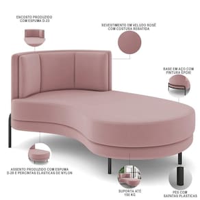 Sofá Chaise Longue Sala De Estar Living Lucca Direito D02 Veludo Rosê C-305 - Lyam Decor