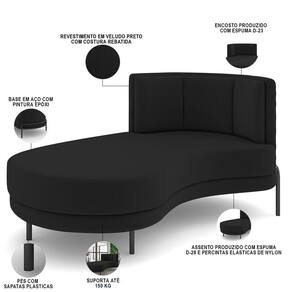 Sofá Chaise Longue Living Lucca Esquerdo D02 Veludo Preto C-300