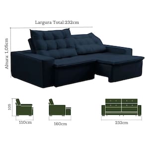 MEDIDAS - Altura: 105 cm | Comprimento: 232cm | Profundidade fechado: 110 cm | Profundidade aberto: 160 cm