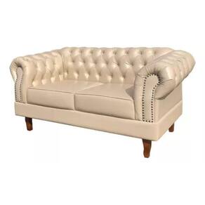 Sofá Chesterfield 2 Lugares Dom Pedro Vintage Retrô Capitonê Couro Bege