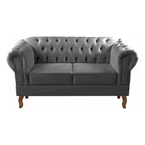 Sofá Chesterfield 2 Lugares Dom Pedro Vintage Retrô Capitonê Suede Cinza Grafite