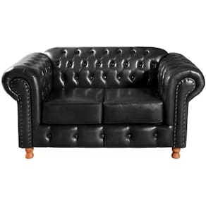 Sofá Chesterfield 2 Lugares Luís XV Vintage Retrô Capitonê Couro Preto