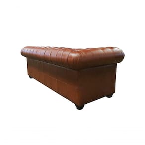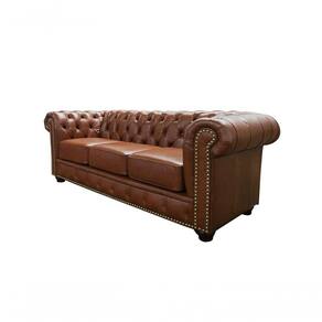 Sofá Chesterfield De Couro 3 Lugares Marrom Pigmentado - Mempra