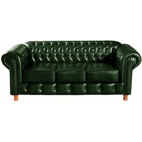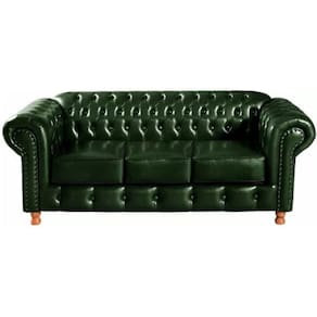Sofá Chesterfield Luís XV 3 Lugares Vintage Retrô Capitonê Couro Verde