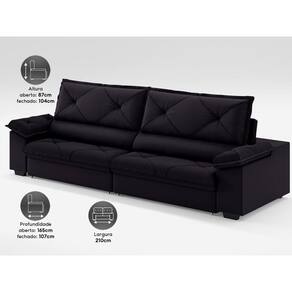 Sofá com Carregador USB e Molas no Assento Retrátil Reclinável Maestro 2,10m Velosuede - NETSOFAS - Preto