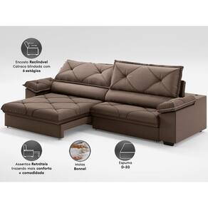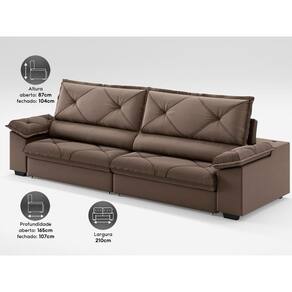 Sofá com Carregador USB e Molas no Assento Retrátil Reclinável Maestro 2,10m Velosuede - NETSOFAS - Marrom