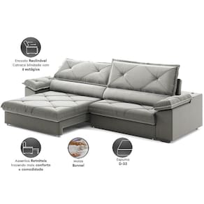 Enchimento do Encosto:Percinta Elástica, Flocos de Espuma e Fibra de Poliéster Siliconada.