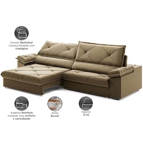 Enchimento do Assento:Espuma D-33 Soft, Percinta Elástica e Mola Bonnel.