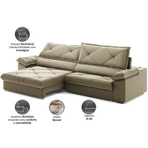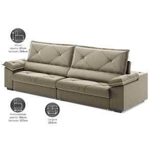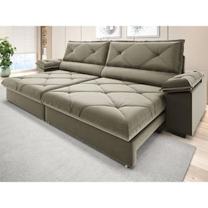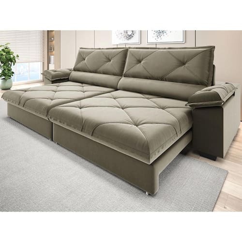 Sofá com Carregador USB e Molas no Assento Retrátil Reclinável Maestro 2,50m Veludocristal - NETSOFAS - Fendi