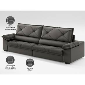 USB:Sofá com uma tomada contendo duas entradas USB para carregamento de eletrônicos, potência de 5V.Não incluso fonte de energia. Extensão do cabo da tomada pode variar de 70cm a 90cm.