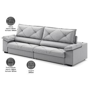 USB:Sofá com uma tomada contendo duas entradas USB para carregamento de eletrônicos, potência de 5V.Não incluso fonte de energia. Extensão do cabo da tomada pode variar de 70cm a 90cm.