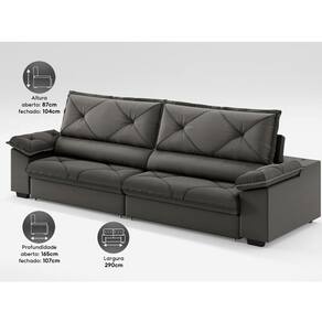 Sofá com Carregador USB e Molas no Assento Retrátil Reclinável Nice 2,90m Velosuede - NETSOFAS - Cinza