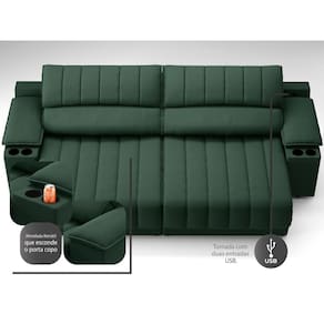 USB:Sofá com uma tomada contendo duas entradas USB para carregamento de eletrônicos, potência de 5V.Não incluso fonte de energia. Extensão do cabo da tomada pode variar de 70cm a 90cm.