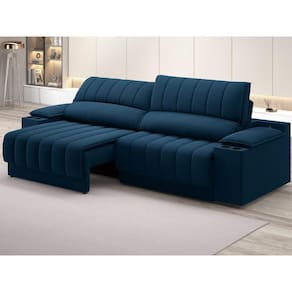 Sofá com Porta Copos Carregador USB Ret Rec Murano 2,50m Velosuede - NETSOFAS - Azul Petróleo