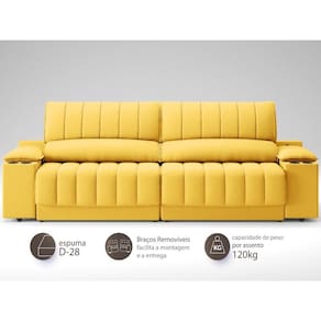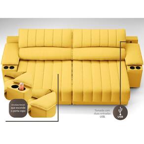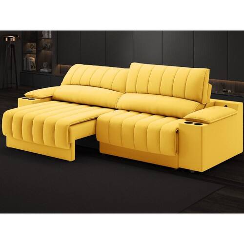 Sofá com Porta Copos Carregador USB Ret Rec Murano 2,50m Velosuede - NETSOFAS - Amarelo