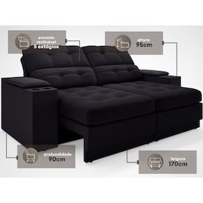 Os objetos que ambientam as fotos não acompanham o produto.Verifique as dimensões do produto e certifique-se que o percurso que ele fará até o local de uso permite sua passagem. Nós não nos responsabilizamos por transporte de produtos, caso não caibam em elevadores, acima de três lances de escada e não cabendo na passagem das escadas, por içamentos ou desmontagens de produtos. Quaisquer despesas deste tipo ficam a cargo do cliente.Sofá com Porta Copos. Possuem porta copos fixos no braço. As dimensões do porta copos são aproximadamente10cm x 5cmReservamo-nos o direito de possíveis erros de digitação. Anúncio sujeito a alteração sem aviso prévio.Antes da entrega, nossos produtos passam por um rigoroso controle de qualidade para que cheguem até o cliente em perfeitas condições, entretanto, em casos de desacordo com o proposto, o comprador deverá contatar o nosso SAC e/ou a loja onde a compra foi efetuada.O prazo para solucionar os problemas identificados é de até 30 dias úteis, contados a partir da data do posicionamento do SAC com o comprador.Sofá com USB. Tomada com duas entradas USB, extensão do cabo é de 70cm a 90cm podendo sofrer variação, dependendo do modelo.