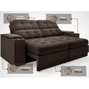 USB:Sofá com uma tomada contendo duas entradas USB para carregamento de eletrônicos, potência de 5V.Não incluso fonte de energia. Extensão do cabo da tomada pode variar de 70cm a 90cm.
