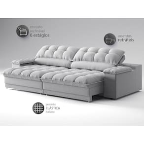 Enchimento do Encosto:Percinta Elástica, Flocos de Espuma e Fibra de Poliéster Siliconada.