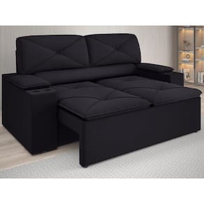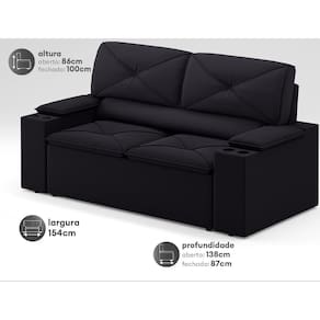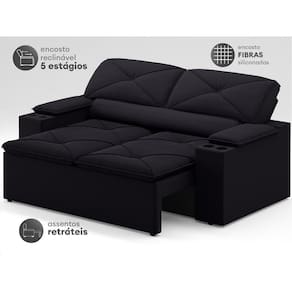 Sofá com Porta Copos Retrátil e Reclinável Pop 1,54m Velosuede - NETSOFAS - Preto