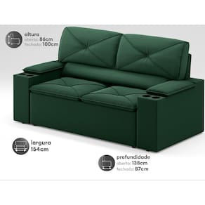 Porta Copos:Sofápossui quatro porta copos fixos (dois em cada braço). As dimensõesdo porta coposão aproximadamente10cmx5cm