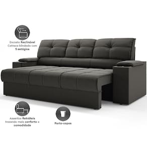 Porta Copos:Sofápossui quatro porta copos fixos (dois em cada braço). As dimensõesdo porta coposão aproximadamente10cmx5cm