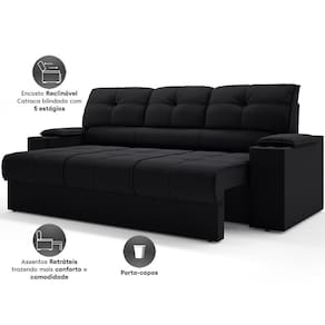 Porta Copos:Sofápossui quatro porta copos fixos (dois em cada braço). As dimensõesdo porta coposão aproximadamente10cmx5cm