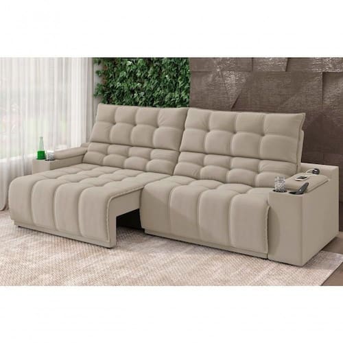 Versatilidade Retrátil/Reclinável: Com 4 estágios de reclinação, este sofá se adapta perfeitamente às suas necessidades. Quando desejar ganhar espaço na sala, basta recolher o assento; quando a ideia é relaxar, estenda-o para aproveitar todo o conforto oferecido.