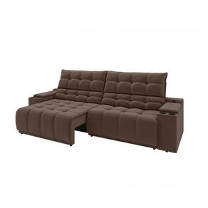 Assento: Espuma D28 para máximo conforto.Encosto: Removível com fibra siliconada.Braço: Espuma D18 com porta copos integrados.Corrediça: Tubular.Pés: PVC.Estrutura: Madeira (Eucalipto/OSB) para durabilidade.Comnto: 230cm.Altura: 96 cm.Profundidade: 96 cm (abertura de 150 cm).Pillow top: Não.Peso aproximado: 60kg.