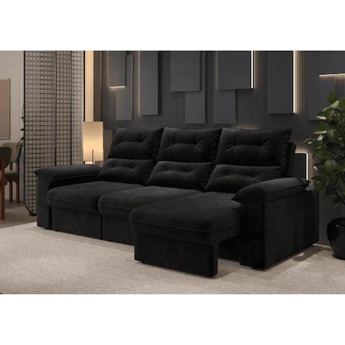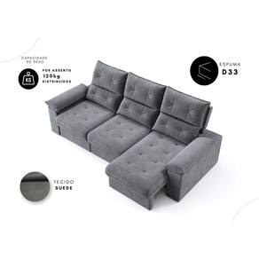 Sofá Copacabana Retrátil e Reclinável 4 Lugares 3 assentos Suede Grafite 230cm