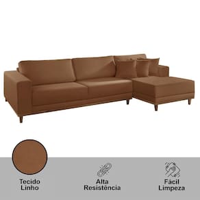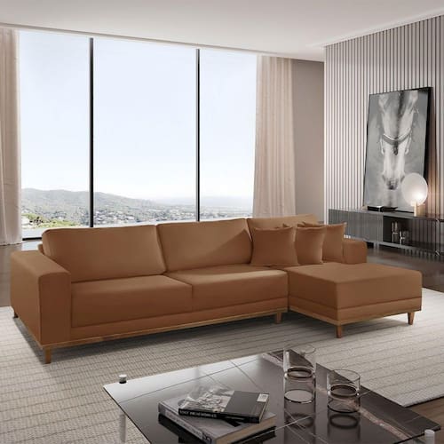 Sofá Cronos 03 Metros Chaise Lado Direito Meu Sofá Online B020 Veludo Terra
