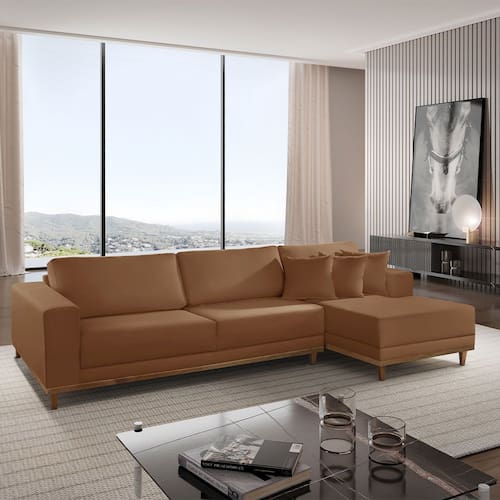 Sofá Cronos 03 Metros Chaise Lado Direito Meu Sofá Online - Marrom Cacau
