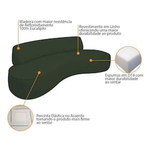 Sofá Curvo 160cm 2 Lugares E 2 Poltrona Amsterdã Linho - Doce Sonho Móveis Cor Verde