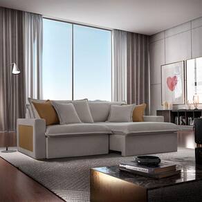 Assento: Retratil com percinta elastica, molas espirais, espuma D-28, Pillow de 15 cm com Molas Ensacadas.