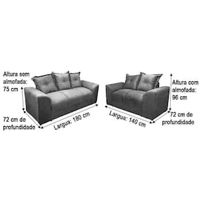MEDIDAS SOFÁ 2 LUGARES: Altura: 96 cm Largura: 1.40 m Profundidade: 72 cm