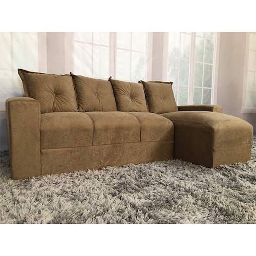 Encosto:Encosto é fixo, com almofadas soltas com flocos de espuma trazendo mais conforto para você na hora do descanso.
