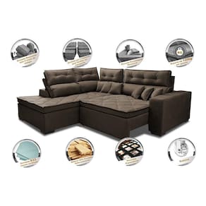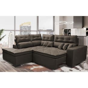 Chegou o Maravilhoso Sofá de Canto Retrátil e Reclinável com Molas Cama inBox Platinum. O que o torna especial são assentos com espuma D33 envolvidas em fibra Siliconada Compactada para que tenha um toque gostoso e aconchegante, além de seu maravilhoso designer com costuras duplas e puxes que o embelezam, proporcionando conforto de um colchão em um Belíssimo Sofá. Sua sala jamais será como antes!