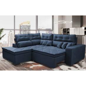 Sofá de Canto 2,60x2,36m Retrátil e Reclinável com Molas Cama inBox Platinum. Esquerdo Suede - Azul Marinho