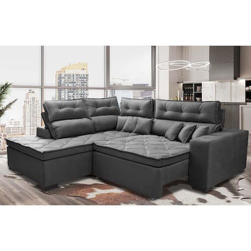 Chegou o Maravilhoso Sofá de Canto Retrátil e Reclinável com Molas Cama inBox Platinum. O que o torna especial são assentos com espuma D33 envolvidas em fibra Siliconada Compactada para que tenha um toque gostoso e aconchegante, além de seu maravilhoso designer com costuras duplas e puxes que o embelezam, proporcionando conforto de um colchão em um Belíssimo Sofá. Sua sala jamais será como antes!
