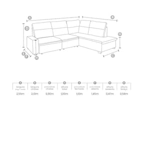 Dimensões: Altura: 100 cm Largura: 255 cm Profundidade: 210 cm Peso: 92,50 kg