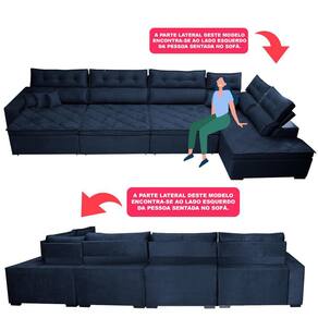 Sofá de Canto 4,80x2,36m Retrátil e Reclinável com Molas Cama inBox Platinum. Direito Suede - Azul Marinho