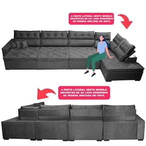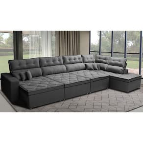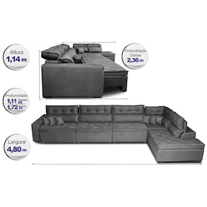Sofá de Canto 4,80x2,36m Retrátil e Reclinável com Molas Cama inBox Platinum. Direito Suede - Cinza